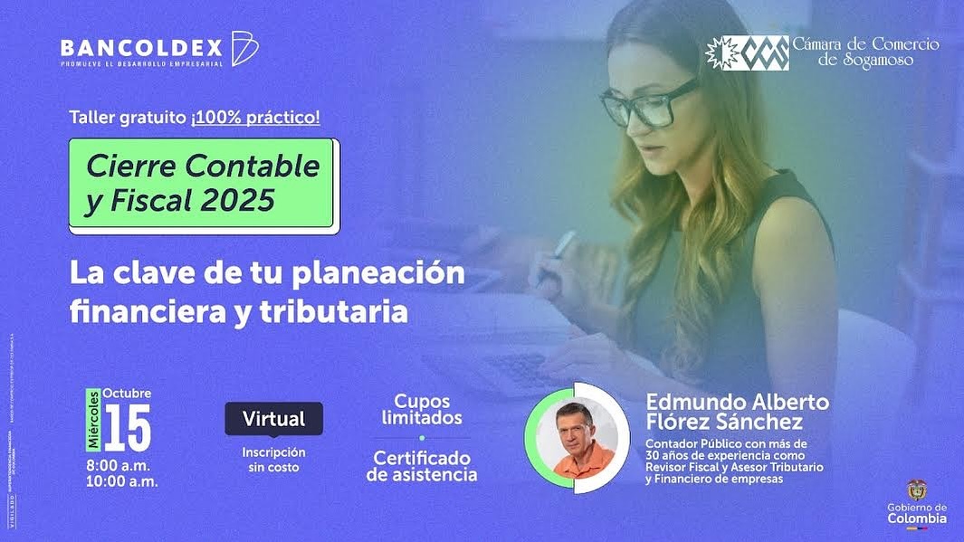 La Cámara de Comercio de Sogamoso, en alianza con Bancóldex y MisiónPyme, te invita al taller virtual y gratuito: